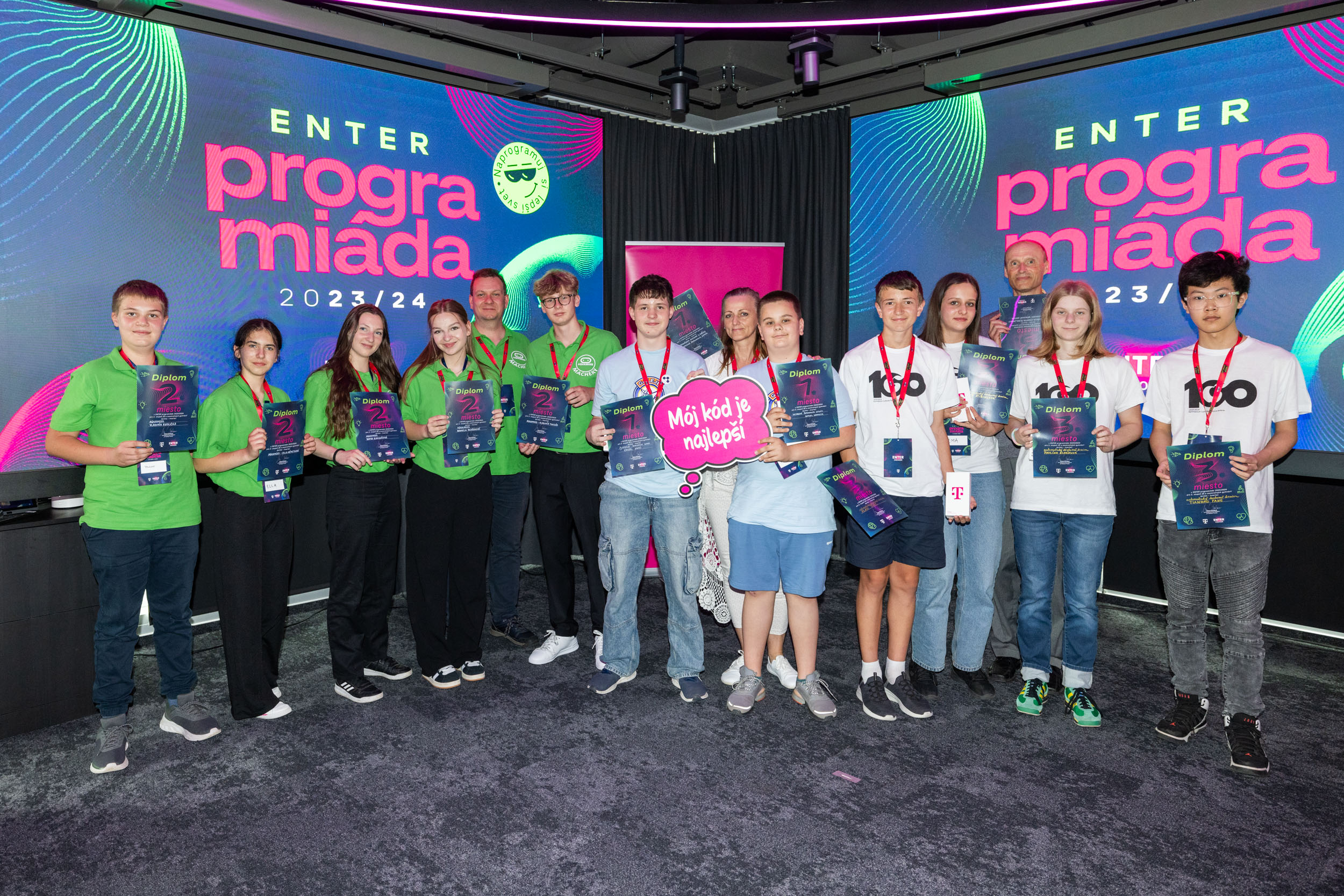 Pätica finalistov z celého Slovenska, ktorí postúpili do záverečného kola ENTER Programiády, odprezentovali 6. júna 2024 v priestoroch Slovak Telekom v Bratislave osobne pred odbornou porotou svoje výnimočné projekty, ktoré riešili celospoločenské témy.
